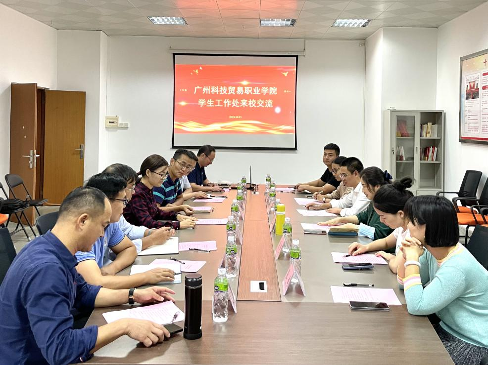 10月21日,广州科技贸易职业学院学生工作处处长彭皓焱一行6人来校交流,我校学生工作部部长李华、武装部部长薛超良等有关部门负责人参加座谈会。
