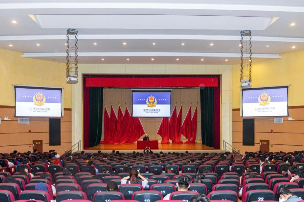 11月16日,江门市公安局蓬江分局在我校吕志和礼堂开展反诈知识讲座。江门市公安局蓬江分局刑事侦查大队大队长郑国浓、新城派出所政治教导员谭炎焜等8名同志出席,学校学生干部共300余人参加。