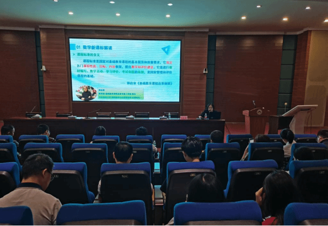 在数学科培训中,数学与计算科学学院盛业青老师以《立足新课标 研读新教材 规划新学期教学》为题,结合新教材使用过程中的常见困惑,通过案例剖析,指导教师灵活运用身边教学资源,创设符合学生认知规律的教学情境,帮助教师在新学期教学中落实数学核心素养与学业质量要求。