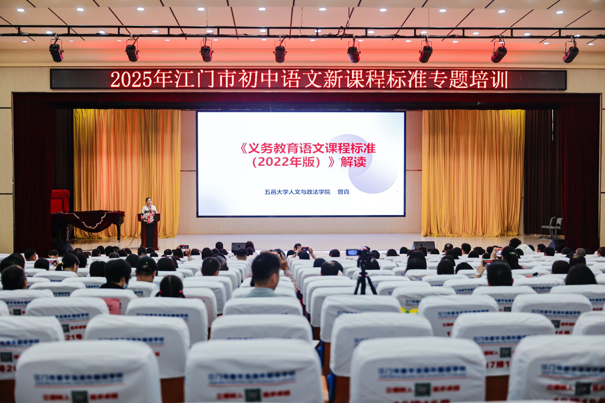 为深入贯彻落实广东省教育厅关于全口径全方位融入式帮扶粤东粤西粤北地区基础教育高质量发展的部署,10月28日,由五邑大学、江门市教育局主办,恩平市教育局协办的初中语文、数学、英语新课程标准培训在恩平市成功举办。本次培训作为基础教育帮扶行动的重要一环,旨在提升教师基于新课标的教学设计与实践能力,加强教师队伍专业素养,推动区域教育质量持续提升。