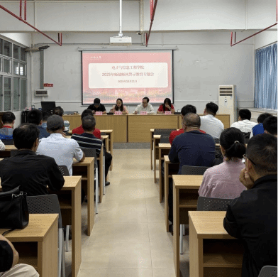 为切实筑牢教职工思想防线,严明纪律规矩,2025年10月21日,电子信息工程学院在台山商会大楼605室召开2025年全院教职工师德师风警示教育专题会。学院领导班子成员、全体教职工参会,会议由学院党委书记张桂荣主持。