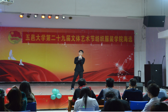 3月20日晚,纺织服装学院于学生活动中心一楼舞蹈厅隆重举行了歌手大赛海选初赛。本次大赛,我院盛情邀请了校音乐社的社长莅临现场进行评分指导,同时观众席和现场空地都挤满了观众,现场气氛十分热闹。