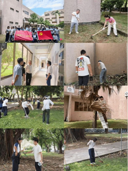 9月25日至27日,学院持续组织开展爱国卫生集中专项行动,进行环境清理,快速疏通、清理积水,以最快速度助力美丽校园建设。攻坚期间,校党委副书记李华、副校长董超俊指导学院疫情防控工作,学院班子成员、师生党员代表、教师代表以及学生志愿者共计500余人,对新会楼、台山楼及其周边区域进行了全面卫生整治,重点清理了竹林、树木、绿化带等区域的落叶杂物等卫生死角,特别对易积水处进行了仔细清理。学院党委书记黄应忠强调了开展爱国卫生运动的重要性,要求师生党员发挥模范作用,带动身边师生共同参与爱国卫生运动,养成良好的卫生习惯,共建美丽校园。