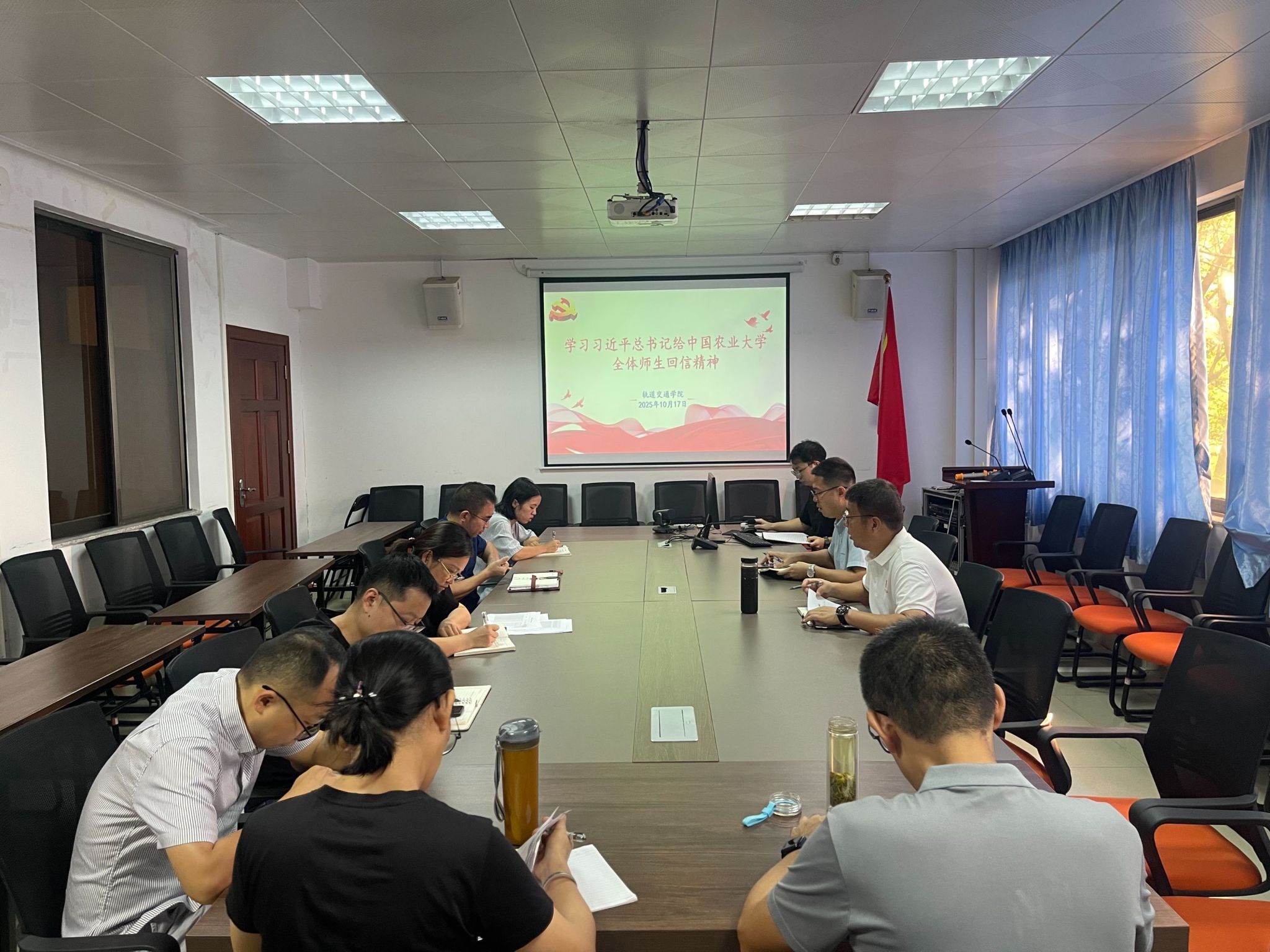 10月17日上午,轨道交通学院党委在恩平楼302会议室召开理论学习中心组(扩大)会议,深入学习贯彻习近平给中国农业大学全体师生回信精神。学院班子成员、党支部书记、辅导员、教工党员代表等参加了本次学习。会议由学院党委书记常胜涛主持。