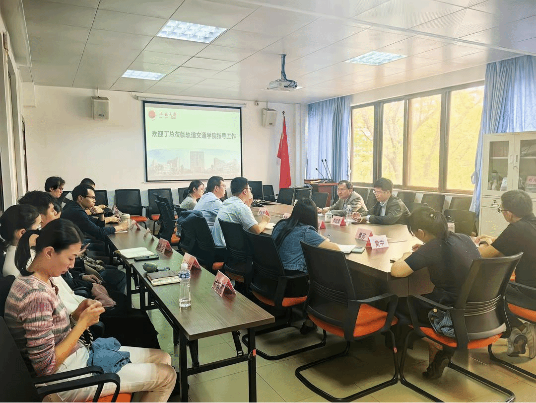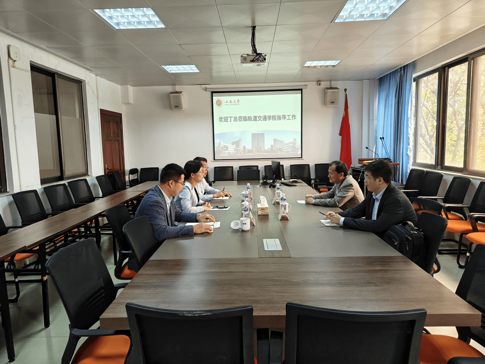 丁叁叁教授与我校党委副书记李华、学院党委书记常胜涛、副院长(主持工作)黄尊地举行专项会谈,双方围绕轨道交通学科发展前沿、科研模式创新、校企协同育人等议题深入探讨,达成共识。