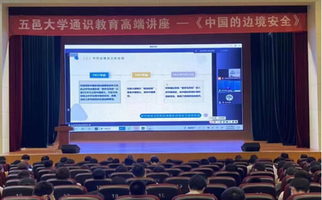 近日,五邑大学通识教育高端讲座第45讲邀请武警少将伏鹏以线上授课的方式,为我校师生讲授“中国的边境安全”。
