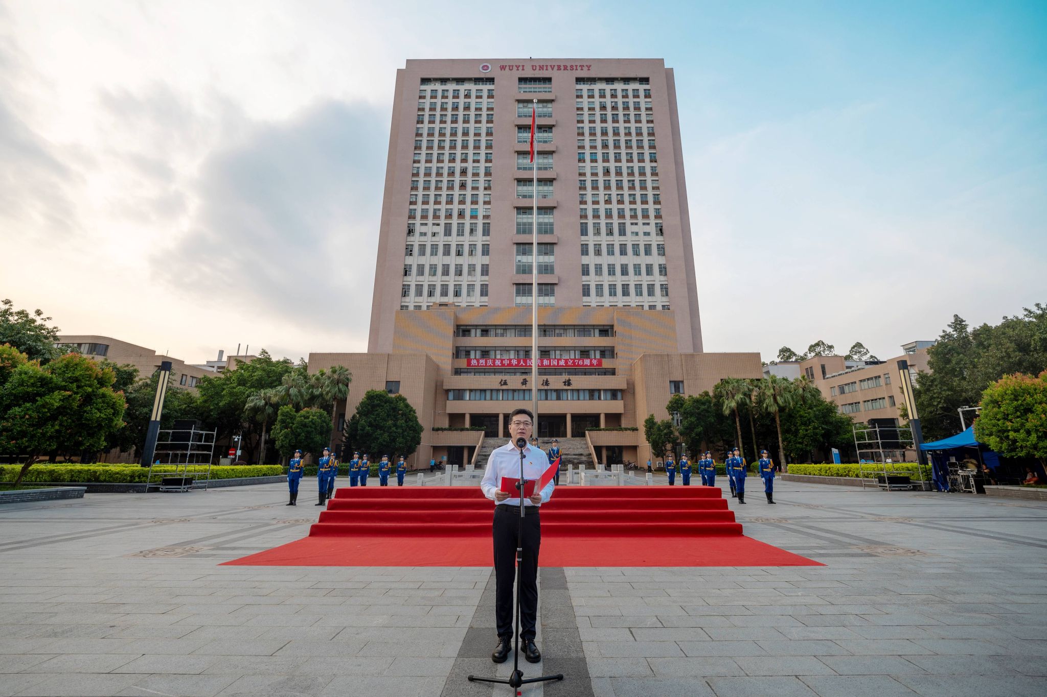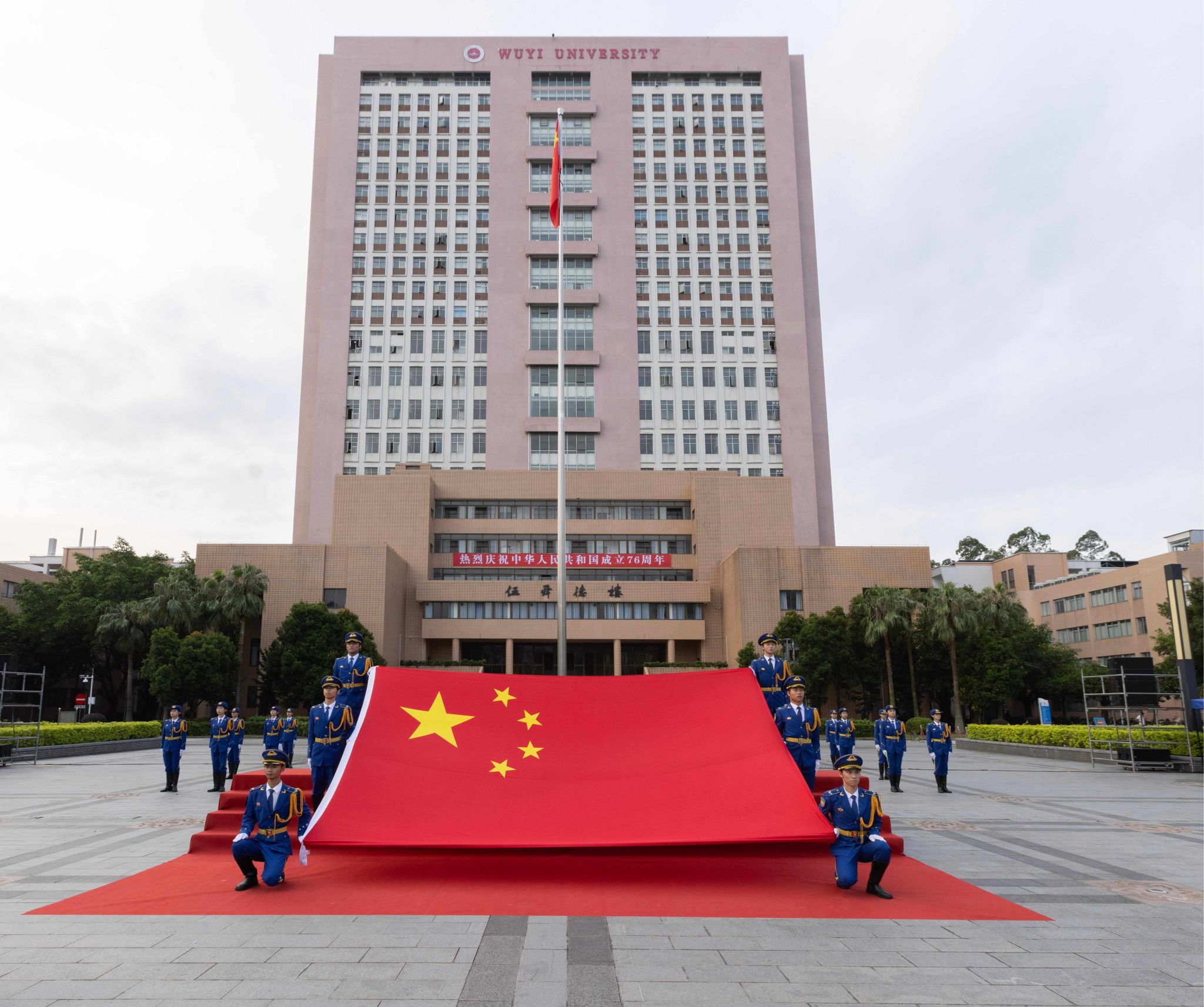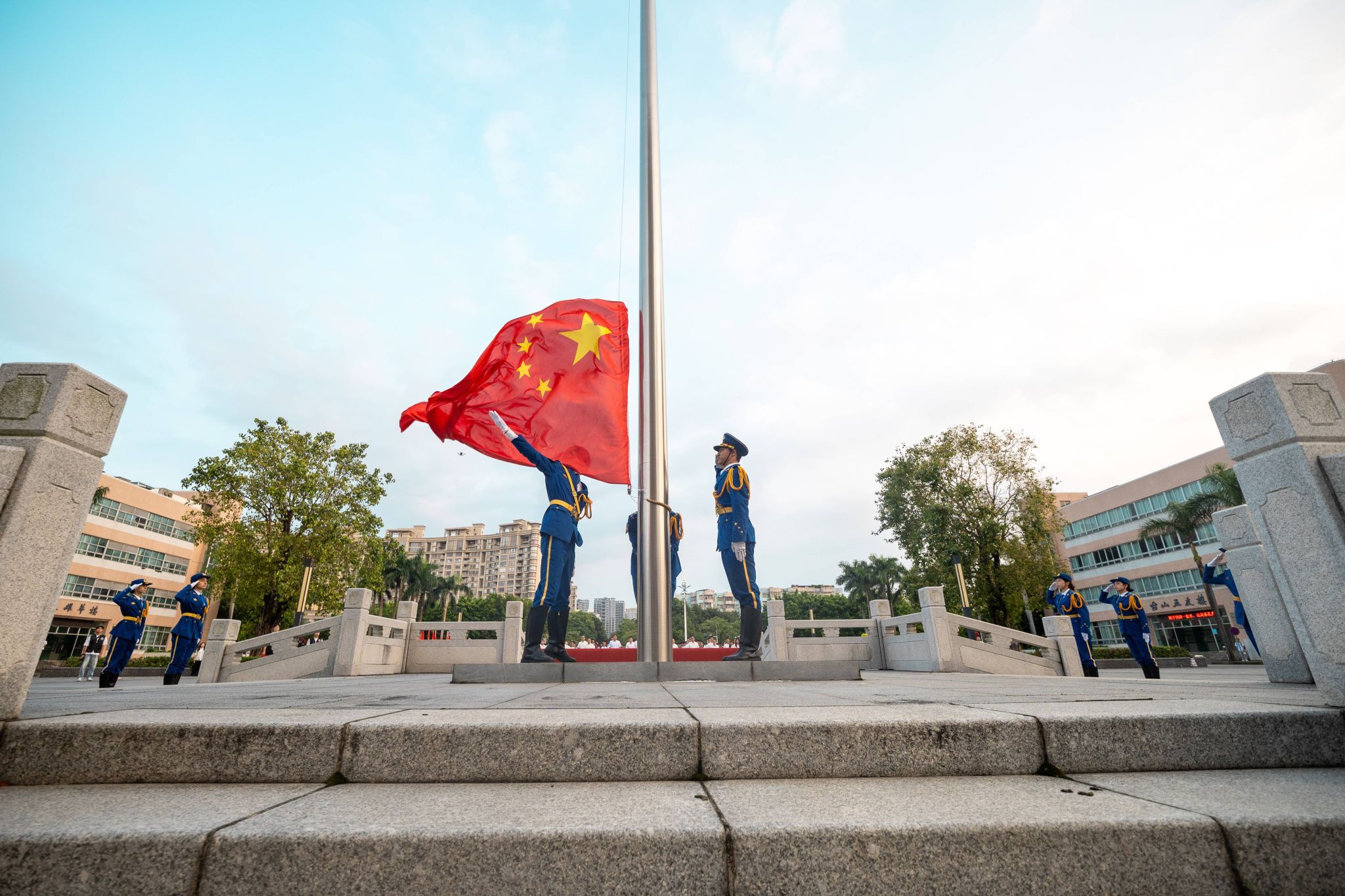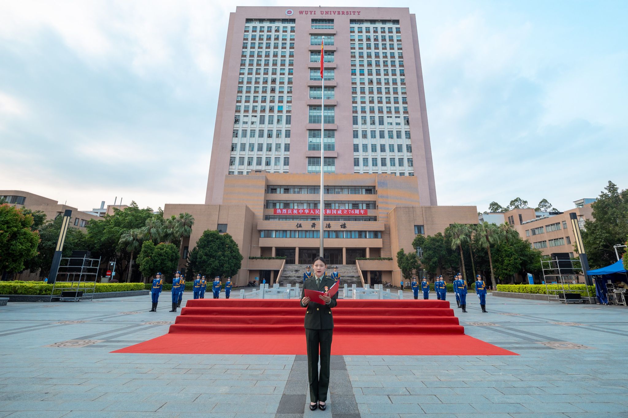七十六载峥嵘岁月,七十六载壮丽辉煌。10月1日上午七点,五邑大学在伍舜德菩提广场举行升国旗仪式。邑大青年以青春之名,向伟大祖国献上最赤诚的告白。这堂生动的爱国主义教育课,浸润初心、激荡使命,让“爱国”二字在庄严承诺中化作步履铿锵的实践,让“担当”二字在青春与时代的对话中成为拔节生长的注脚。
