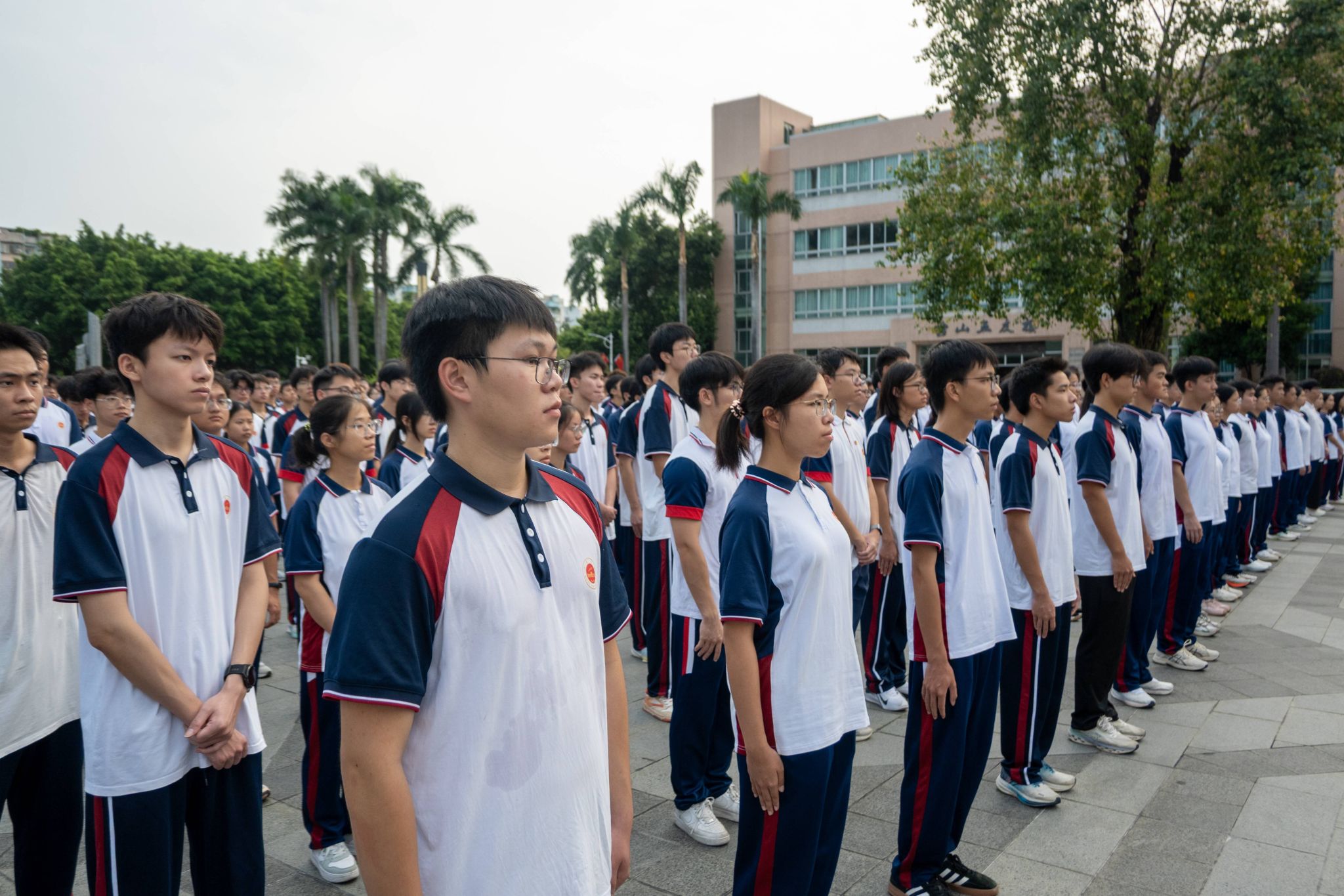 晨光微熹,五星红旗在庄严的国歌中冉冉升起,全体师生庄严肃立,行注目礼,爱国之情在每位邑大人心中激荡。
