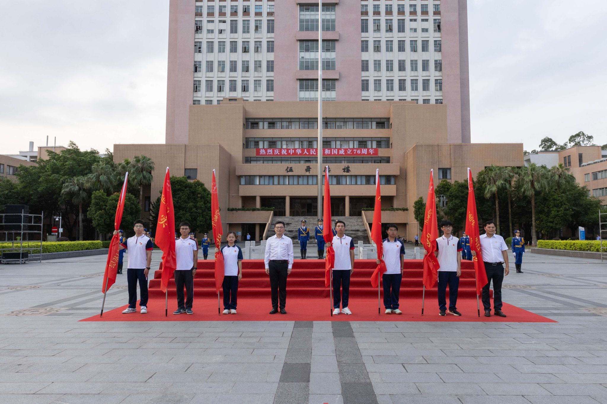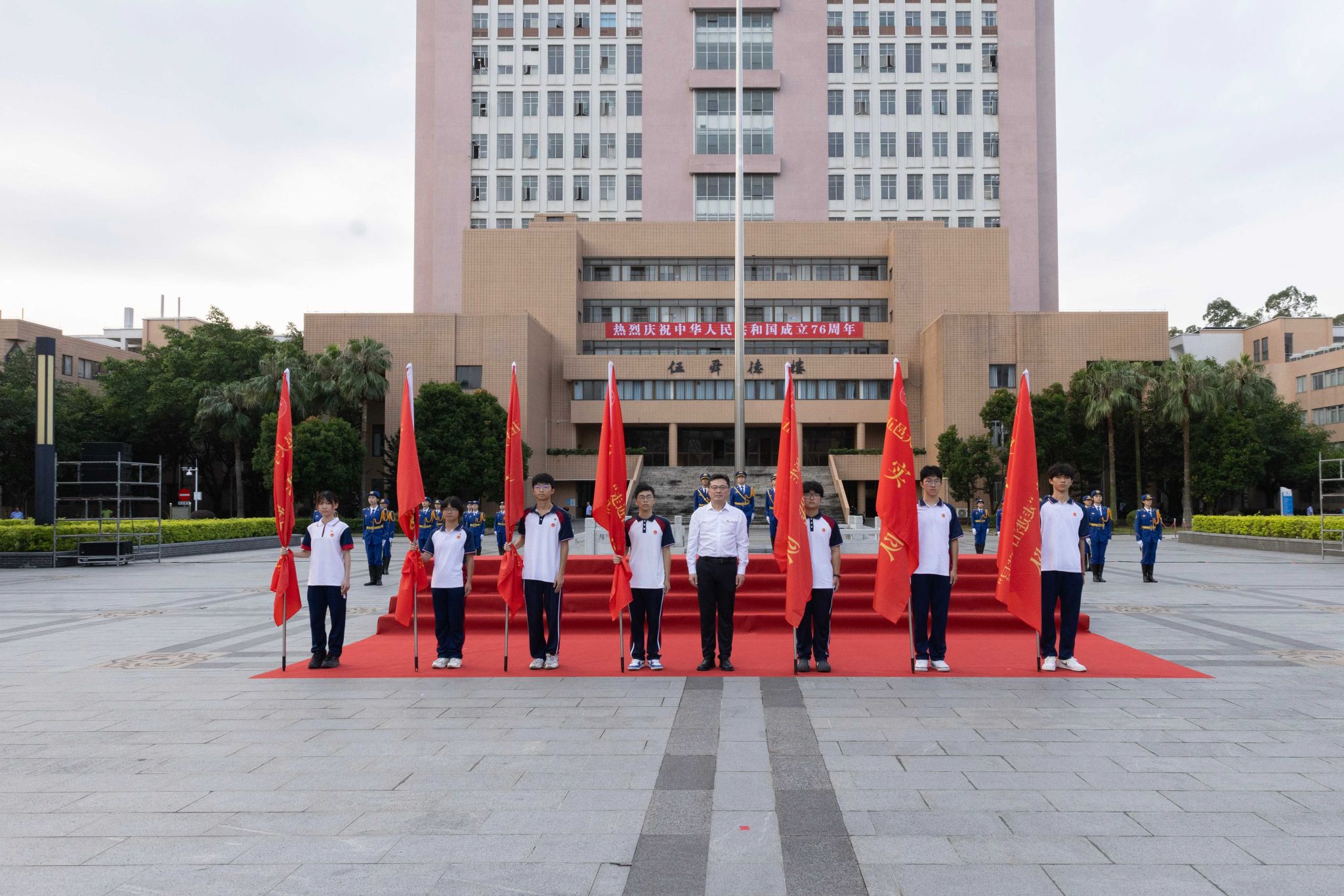 金秋送爽,双节同庆。10月1日上午,五邑大学师生“走进江门基层”实践队出征仪式在伍舜德菩提广场举行,校党委书记栾天罡依次为15支实践队代表授旗。