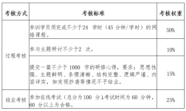 培训以“基于任务”和“关注过程”为原则进行考核,将从过程性与获得感两个维度对学员进行考核,总成绩达到 90 分的学员可在线打印学时证明,学习时长可计入继续教育培训学时。