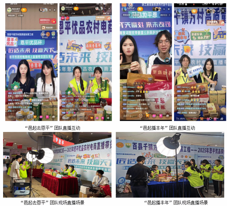 五邑大学经济管理学院积极响应“百千万工程”推动乡村产业振兴的号召,本着服务地方的专业人才培养导向,选派了“邑起去恩平”“邑起播丰年”两支电商团队参赛。学院高度重视此次比赛,对参赛队伍给予了大力支持,在直播间搭建、设备配置、指导教师配备、参赛交通和后勤等方面均给予了无微不至的帮助和关怀,让学生团队全身心投入参赛过程,用行动为“百千万工程”和“双百行动”贡献力量。比赛也得到学生处等有关部门的大力支持。