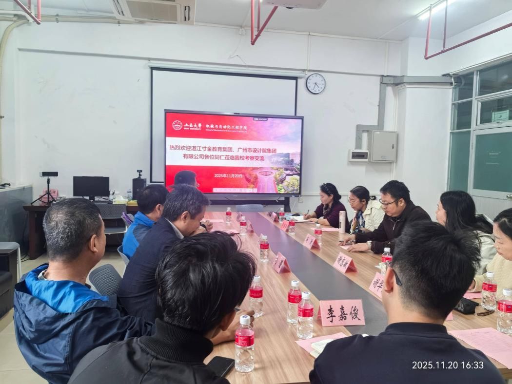 2025年11月20日下午,湛江寸金教育集团发展规划部主任杨广城、科员陈孟振一行莅临我校,围绕绿色校园建设、新工科人才培养以及北区教学楼宇超低能耗空调控制系统科教平台实施经验等方面开展专题考察交流。机械与自动化工程学院副院长梁淑芬热情接待考察团,校企合作单位广州市设计院集团有限公司李继路、刘谨等四人陪同参与交流活动。