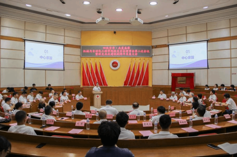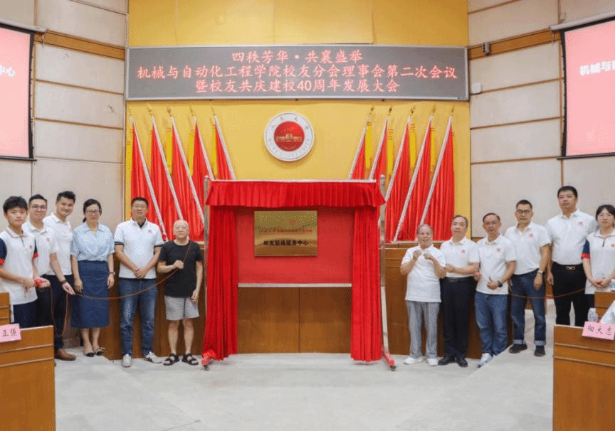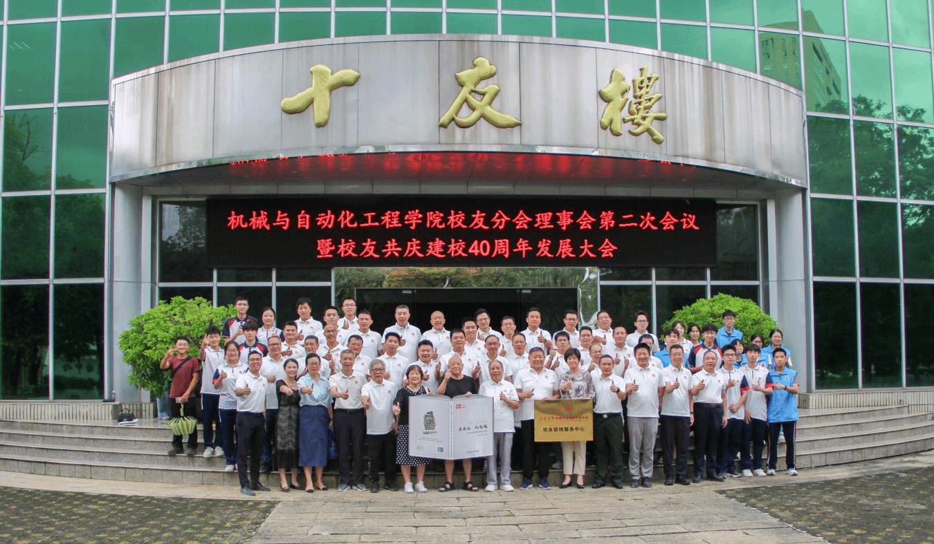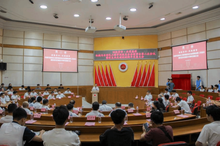 9月21日,在五邑大学建校40周年来临之际,机械与自动化工程学院校友分会理事会第二次会议暨校友共庆建校40周年发展大会在十友楼二楼国际报告厅举行。校友分会执行会长张国新、秘书长蔡延庆、理事代表、校友代表,学校党委学生工作部部长倪兵兵,机械与自动化工程学院领导班子、师生代表近100人参加会议,会议由学院党委书记易正强主持。