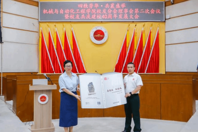 会上,还举行了《春蚕丝 机电魂--邑大机自学院四秩育人侧记》新书发布会。倪兵兵部长介绍新书,他表示,这是机械与自动化学院250余名师生、校友对往昔岁月的回顾,更是对机电人精神内核的深刻提炼,书中每一段文字都饱含了对母校的深情厚谊,书中体现的教师无私奉献、学子实干创新的精神是学院发展的不懈动力,更是文化延续。李辛沫院长分享新书的出版过程,从提出编辑一本师生共忆往昔文集的构想,到收获第一份稿件时的感动,越来越多师生、校友热烈响应参与供稿,在学院校友分会的大力支持下,这本书籍得以顺利出版,这将作为庆祝建校40周年的特殊献礼。随后,学生代表齐诵新书第一篇文章,共同追忆叶家康老校长的谆谆教诲。