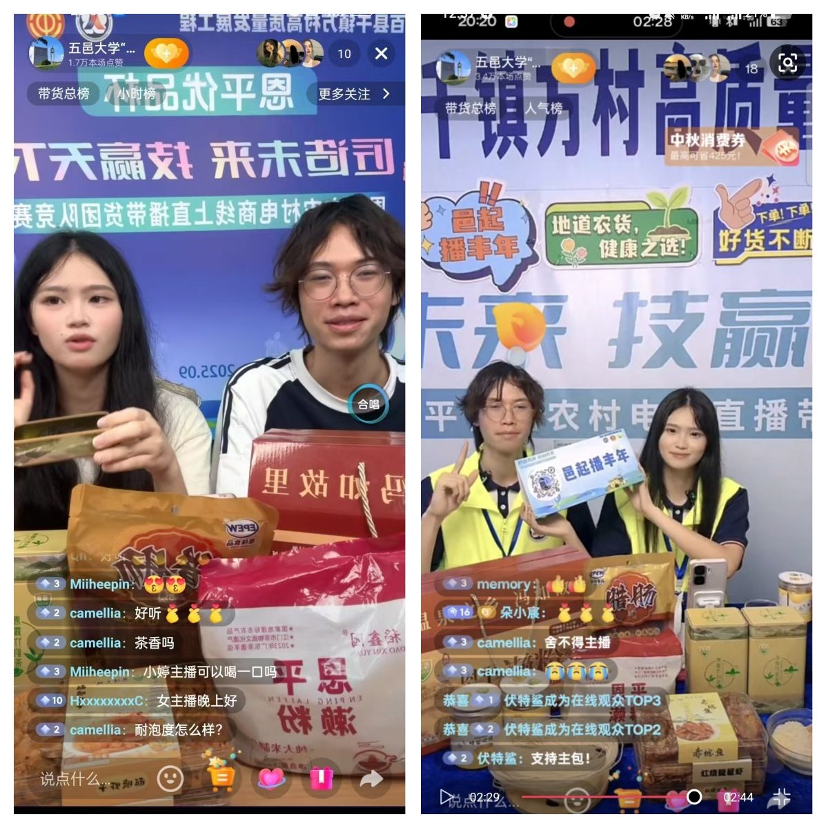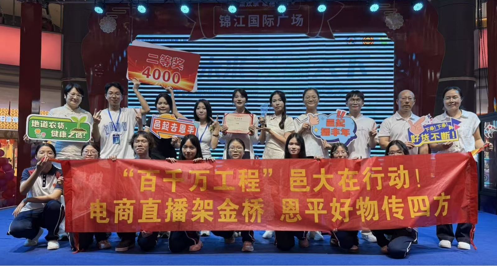 五邑大学经济管理学院积极响应“百千万工程”推动乡村产业振兴的号召,本着服务地方的专业人才培养导向,选派了“邑起去恩平”“邑起播丰年”两支电商团队参赛。学院高度重视此次比赛,对参赛队伍给予了大力支持,在直播间搭建、设备配置、指导教师配备、参赛交通和后勤等方面均给予了无微不至的帮助和关怀,让学生团队全身心投入参赛过程,用行动为“百千万工程”和“双百行动”贡献力量。比赛也得到学生处等有关部门的大力支持。