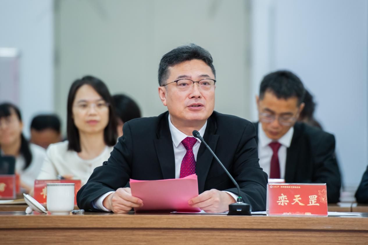 五邑大学党委书记栾天罡作工作汇报,向各位专家介绍五邑大学发展史、学校建设情况。
