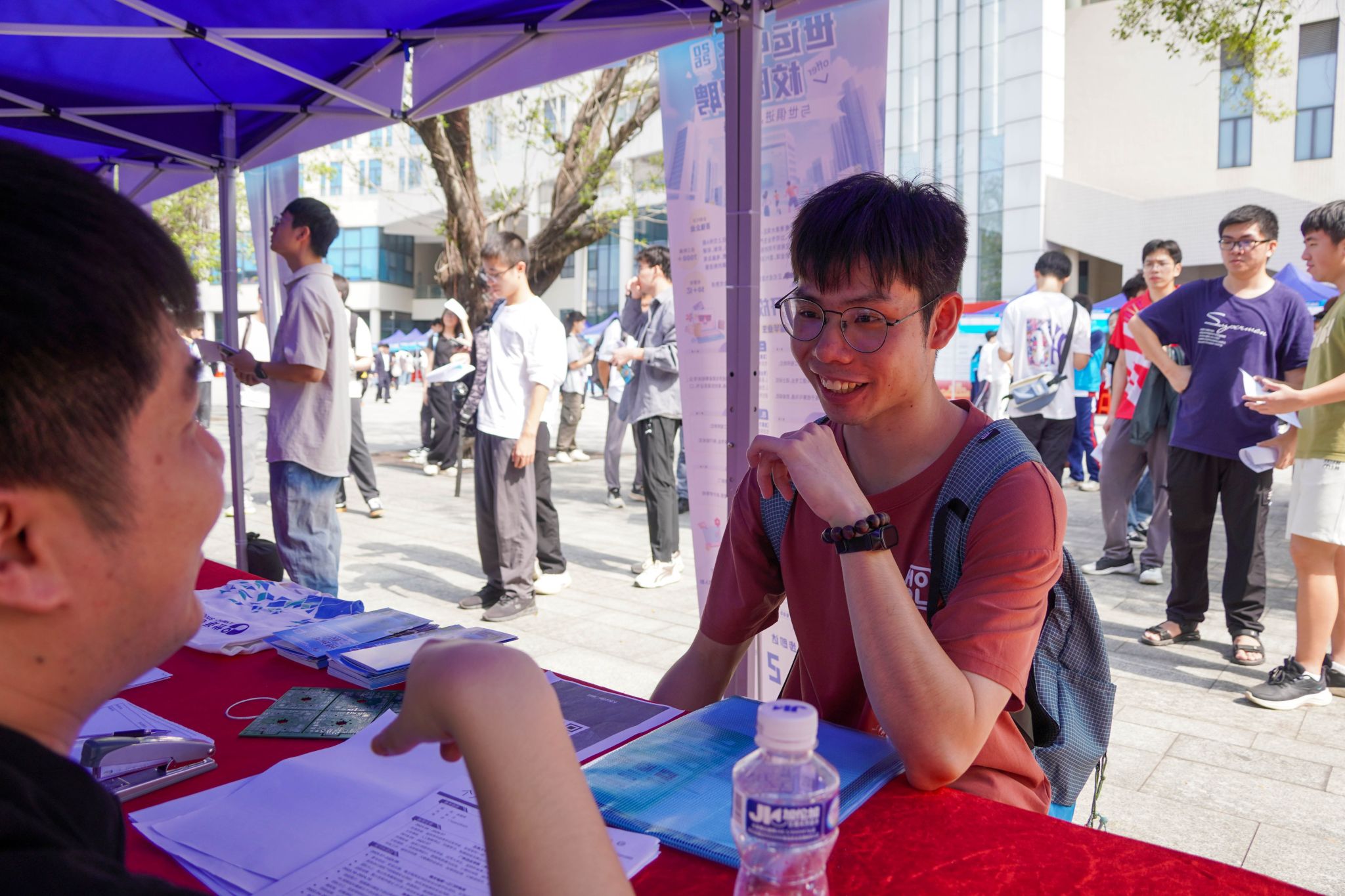 本次活动由广东省教育厅主办,五邑大学联合共青团江门市委员会、江门市人才工作局共同承办。三方深度协同,以“精准服务、多元赋能”为核心。精准邀约保伦电子、中交四航局航通船业、科恒实业、沃得光电等本地及湾区优质企业、校友企业。同步开设线上专区,链接港澳企业资源,拓宽就业选择。现场特设“兴乡创业专区”(产品展示+招聘)、简历诊断、应征入伍政策咨询等特色服务展位。依托AI智能匹配工具,为毕业生精准推送心仪岗位。