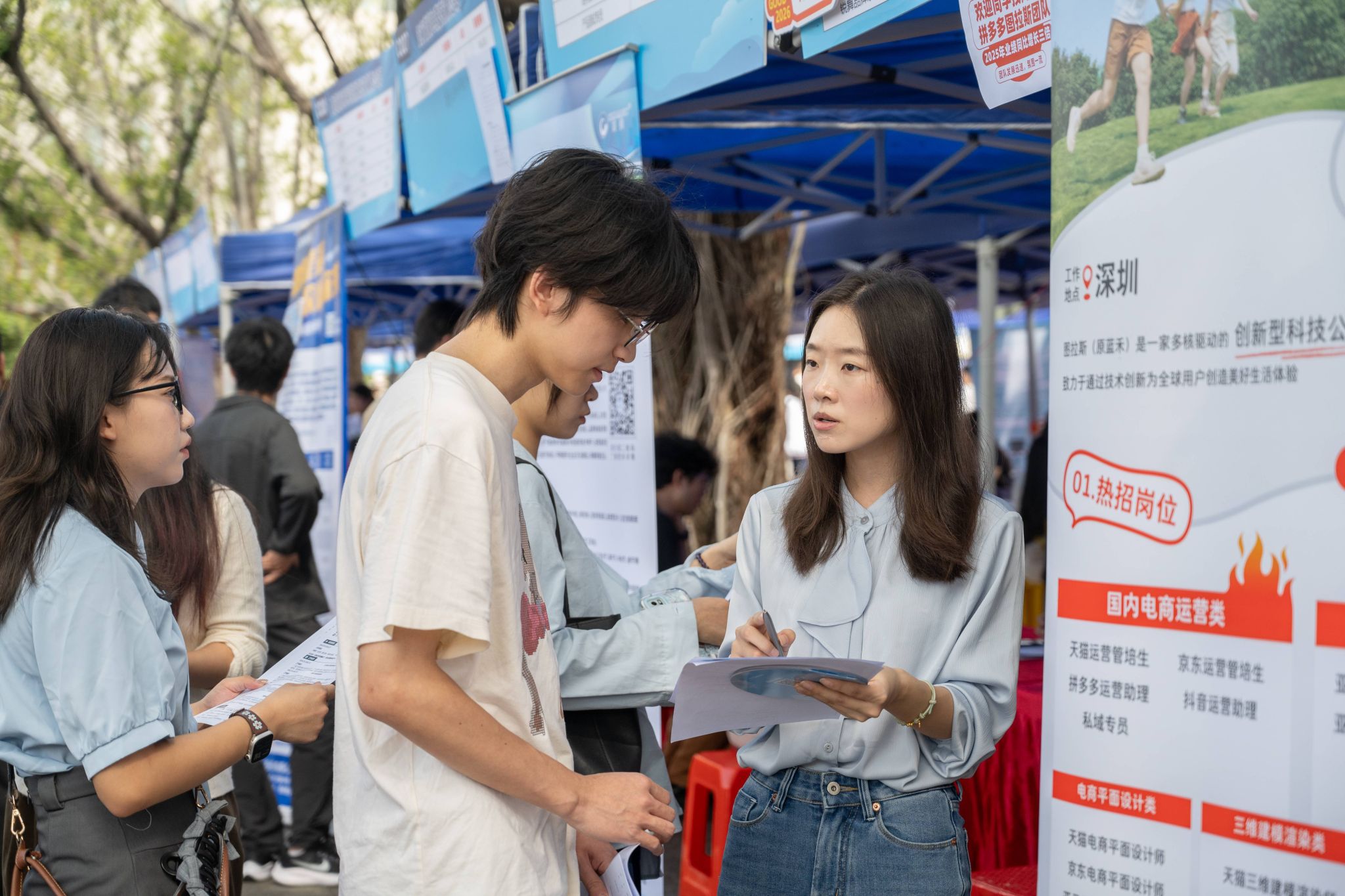 为响应“百万英才汇南粤”行动计划,11月8日,“就在南粤”广东省2026届普通高校毕业生系列对接活动江门地区专场在五邑大学创新广场火热举行。国企、行业龙头领衔,348家优质企业携6800余个岗位精准对接邑大学子需求,覆盖先进制造、信息技术、金融、教育等多个领域,吸引4000余人次参与。