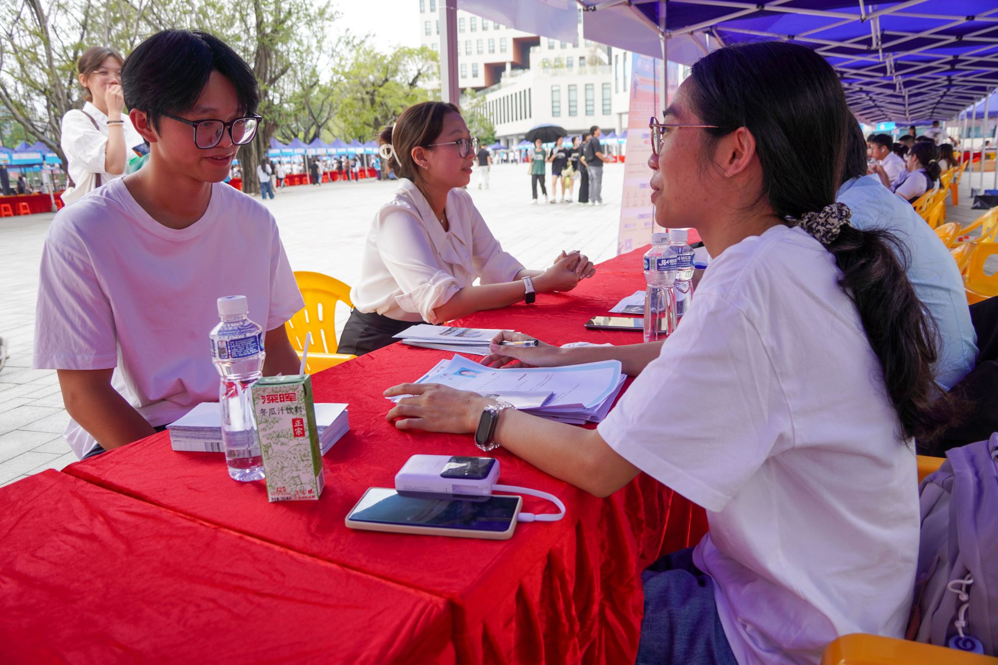 招聘会现场,校党委副书记李华、共青团江门市委员会书记李金元、广东省青少年事业发展中心副主任卢拓妍以及江门市人力资源和社会保障局党组成员、副局长吴克勇与企业代表、应届毕业生面对面亲切交流。李华鼓励毕业生们抓住机遇,找准定位,积极准备,主动出击。