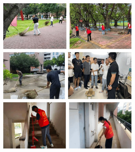 行动伊始,师生依托楼栋网格分工体系快速集结,开展爱国卫生运动,将“责任到位、高效落实”的要求贯穿全程。在环境恢复一线,师生分组推进重点任务:宿舍内,带头做好内务恢复工作;走廊处,接力清除积水,从源头切断蚊虫滋生;伟伦建筑馆及新白宫宿舍周边公共区域,扫帚、簸箕齐上阵,全面清扫落叶、淤泥与散落杂物,确保无卫生死角。