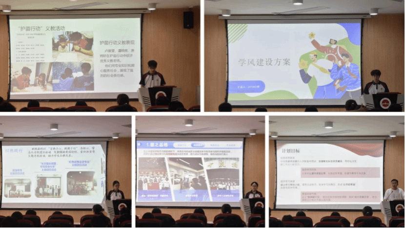 比赛现场,2024级各班级围绕班级规划、实践拓展、建设成果等模块,全面展示学风建设丰硕成果。汇报过程中,各班条理清晰地呈现了学风建设的特色亮点与创新举措,直面当前存在的不足与改进空间,并明确了未来优化方向。从班级学习互助小组的高效运转,到学术沙龙、技能竞赛的常态化开展;从班风凝聚的暖心故事,到实践育人的生动案例,每一份汇报都彰显着班级昂扬向上的精神风貌与踏实进取的优良学风,赢得了评委与在场师生的阵阵掌声。