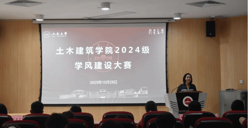 为深入推进学院学风班风建设,充分激发学生学习主动性,着力培养终身学习习惯与班级学风规划能力,2025年10月29日,土木建筑学院在学生综合服务中心314会议室举办2024级班级学风建设大赛。学院院长曾晖、党委副书记张靖、副院长张万胜、杨超,2024级辅导员、班主任及2024级、2025级各班学生代表共计80余人齐聚现场,活动由辅导员陈萌主持。