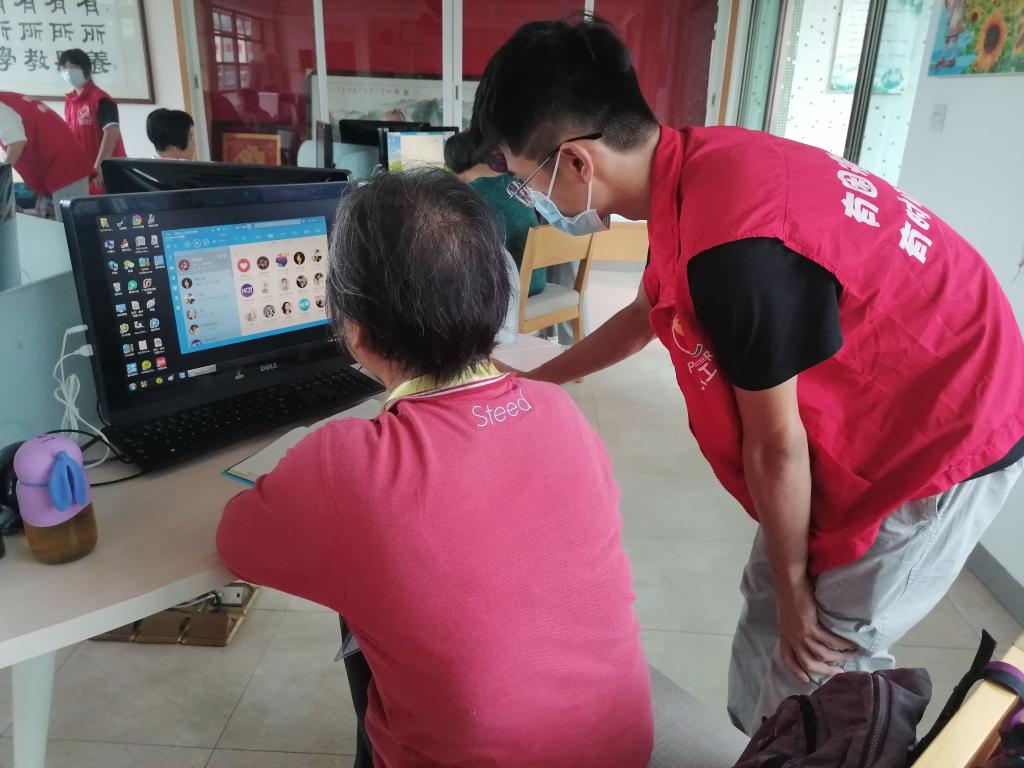 志愿者指导老人使用电脑