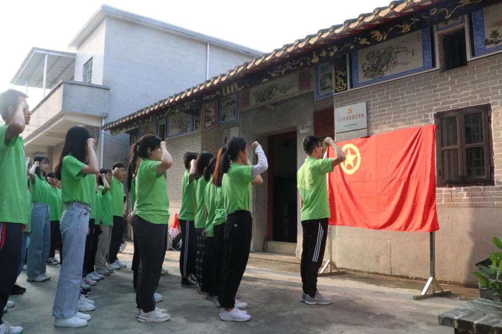 离开新会纪念馆后,“青马班”学员们继续到新会大泽镇五和二社社委会旧址参观学习。在村干部的带领下,学员们参观了被“复原”的农民育种专家周汉华的“试验田”,认真观看了周恩来总理视察五和二社的情景专题片。参观结束后,在五和二社社委会旧址门前,全体学员高举右手,重温入团誓词。