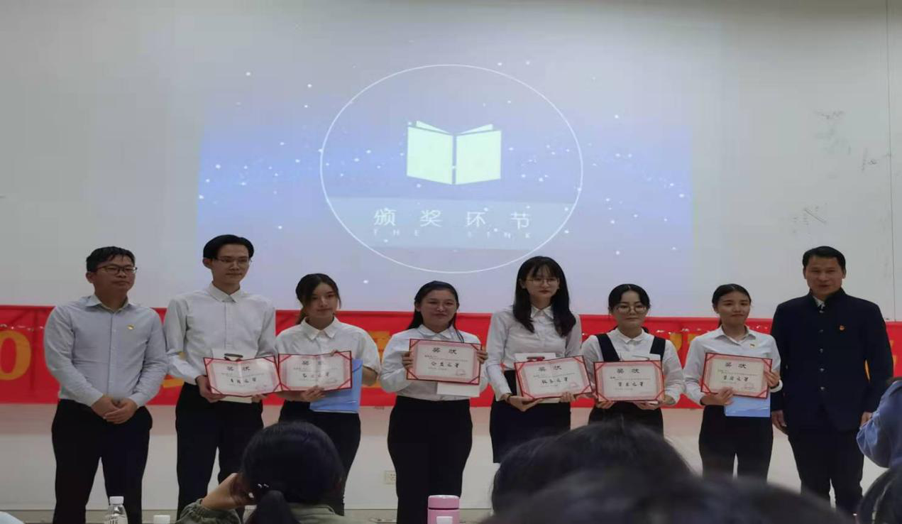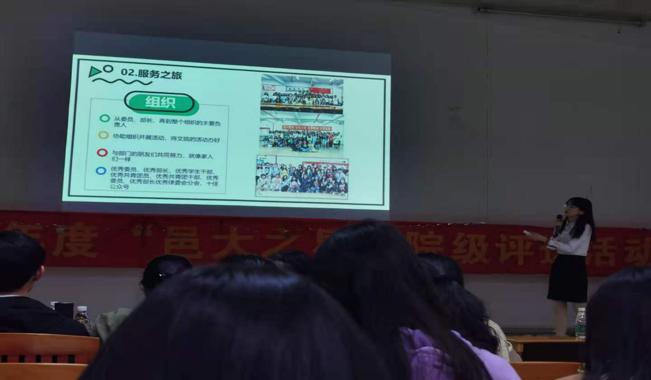 本次文学院“邑大之星”的评选对象包括“学习之星”、“学术之星”、“体育之星”、“艺术之星”、“公益之星”、“自强之星”和“服务之星”。评选活动开始后,主持人先就“邑大之星”评选活动的目的和评选内容进行了简单的介绍。随后,“邑大之星”的候选人依次上台进行演讲。其中,在“学习之星”候选人的演讲之中,罗静文同学向大家分享了“学习不只在课内还在课外”的观点;张诚玉同学通过总结自己的学习经历,向大家充分展现了一个优秀学子应该付出的努力。接着,文学院党总支副书记李奎华老师进行总结。他着重强调了文院学子对于传承、发扬侨乡文化的重要作用,并对同学们寄予了殷切希望。最后,在场的两位老师为获奖同学颁奖并合影留念。同学们都认真听讲,气氛较好,文学院“邑大之星”评选活动圆满结束。