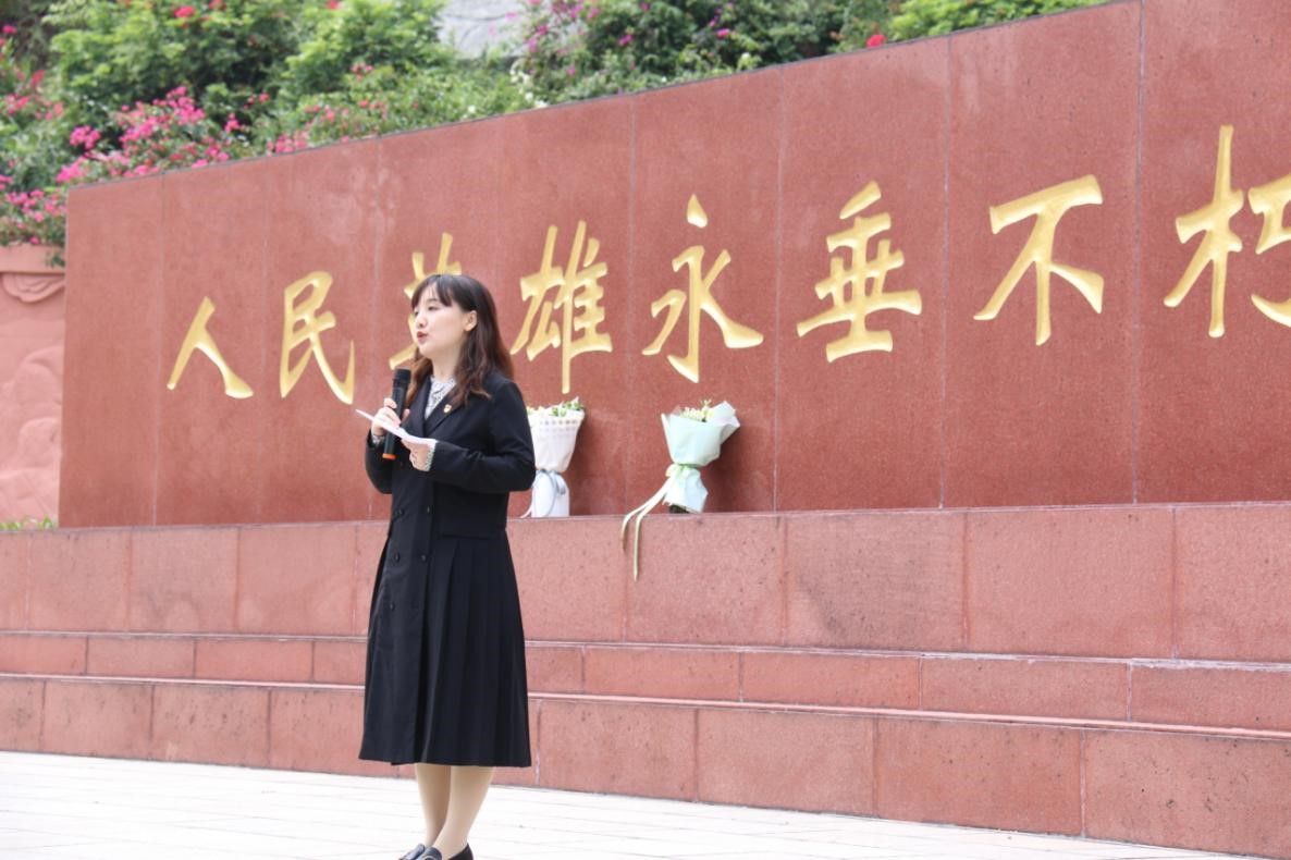 随后,学生党员代表李海瑞进行了《学党史思传承,笃定行跟党走》的主题演讲,号召同学们积极向党组织靠拢,一起学习百年党史,发扬红色传统,传承红色基因,握紧实现中华民族伟大复兴中国梦的接力棒。用党的思想奋斗历程和伟大成就鼓舞斗志、明确方向,用党的光荣传统和优良作风坚定信念、凝聚力量,用党的实践创造和历史经验启迪智慧、砥砺品格。最后,全体师生缓缓绕烈士墓巡祭一圈,深切缅怀革命先烈。