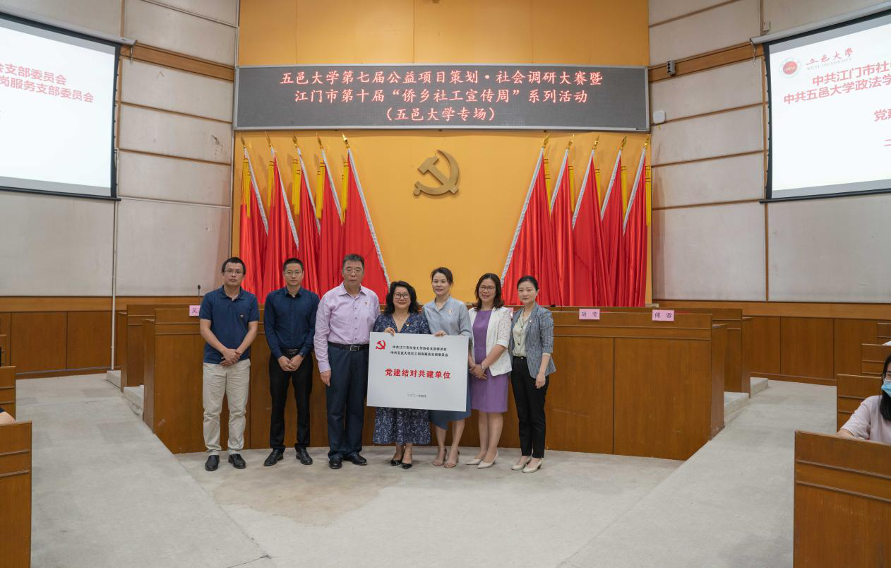随后,政法学院社工创岗服务党支部和江门市社会工作协会党支部进行党建结对,通过党建引领,加强在人才培养、项目评估、项目孵化、科学研究、社会服务、毕业生就业等方面合作。