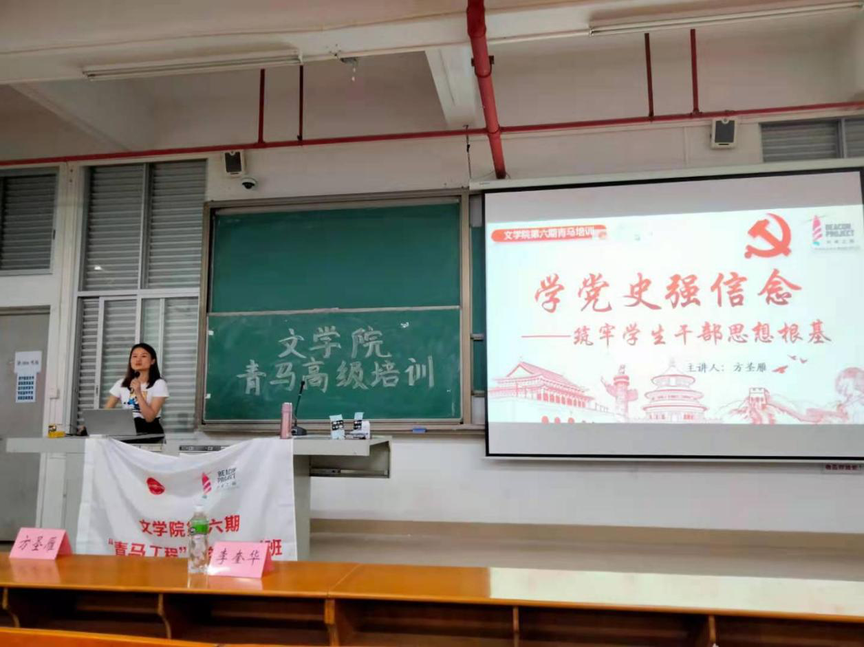 为了提升学生干部对四史的认识,促进更好地学习四史,文学院于4月24日晚在北主楼205教室开展青马班高级培训。主讲人为文学院党总支副书记李奎华、文学院实习辅导员方圣雁,参与培训的人员包括文学院各学生组织成员、大一到大三的班长以及团支书。