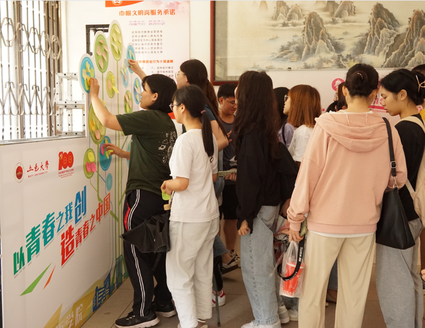 吴小霞副书记带领学生们回顾了五四运动爆发的原因、经过和影响。她从民族危亡、国家贫弱、人民痛苦三个层面展开讲述,使学生认识到从五四运动到后期的工人运动再到南陈北李相约建党的历史必然性。学生通过观看优秀历史电视剧《觉醒年代》中五四运动的片段,从振聋发聩、令人振奋的青年呐喊声中,感受那个时代青年学生们要救国图存实现民族复兴的志向和信心。她引导学生思考,新时代的青年要成为怎么样的人、青春的样子应该是什么样?最后,她号召学子们以积极奋进的姿态度过大学时代,不虚度青春年华,奋发进取,希望每一位学生都以青春之我创建青春之邑大,创建青春之中国!