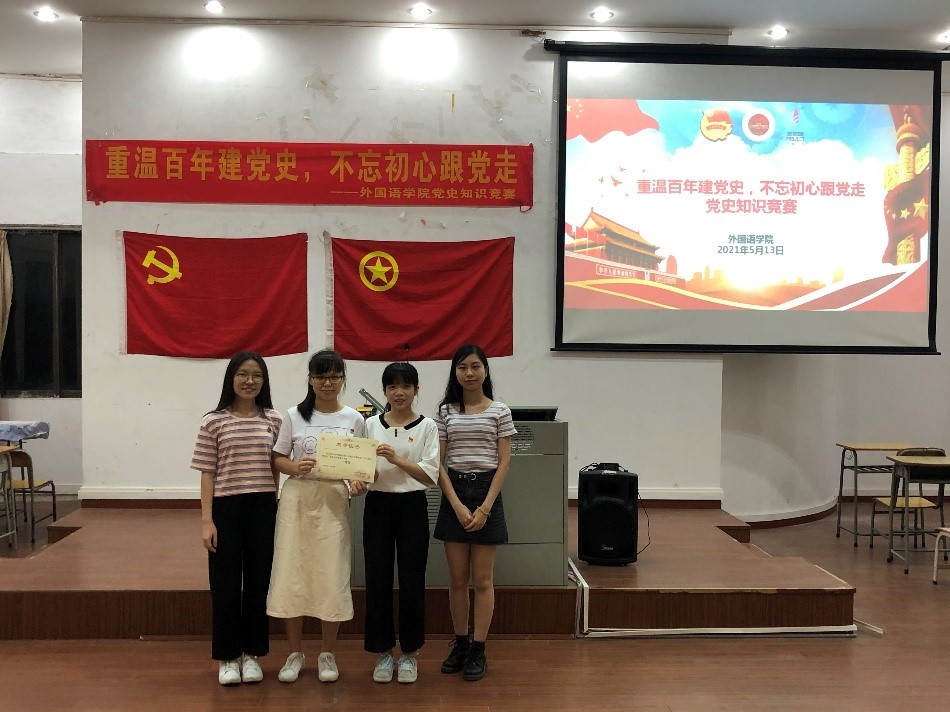 比赛采取笔试和现场答题的方式进行,主要考察学生对党史、新中国史、改革开放史、社会主义发展史及习近平新时代中国特色社会主义思想等方面的学习成果。通过笔试决出10支队伍进入晋级赛。决赛以小组积分赛的形式分为三个环节开展。各小组在规定时间完成单选、多选、抢答、填空以及选分题,最后根据各组的累积分值决出7支获奖队伍。荣获三等奖分别是以伍文婷、李雨馨、汤润华、许晓欣为代表的四支队伍;荣获二等奖的是以赖映仪、邹晓华为代表的两支队伍;荣获一等奖的是以李小曼为代表的队伍。