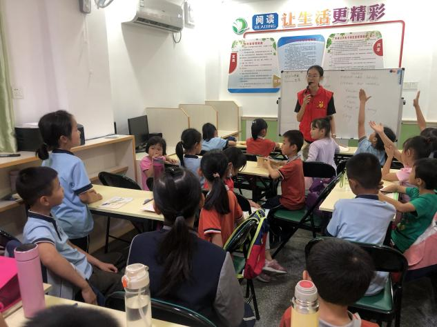 11月5日下午,五邑大学外国语学院青年志愿者协会组织了10名志愿者前往外海四大文体中心开展第一次外海英语阁活动。