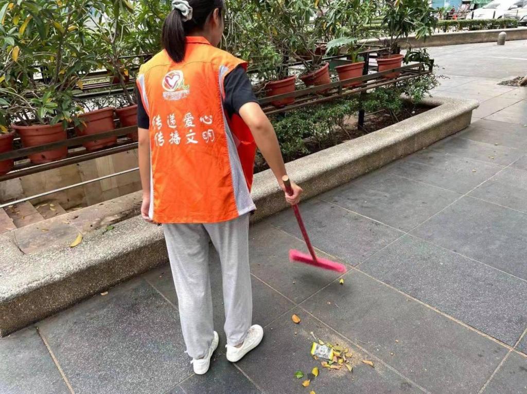 志愿者在清洁广场