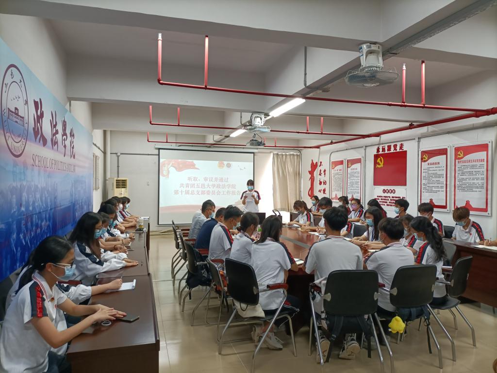 2022年3月15日下午,政法学院在北主楼1404举行共青团五邑大学政法学院第十一次代表大会。政法学院党总支书记邓宝林、党总支副书记吴志锋和团员代表参加了此次会议。