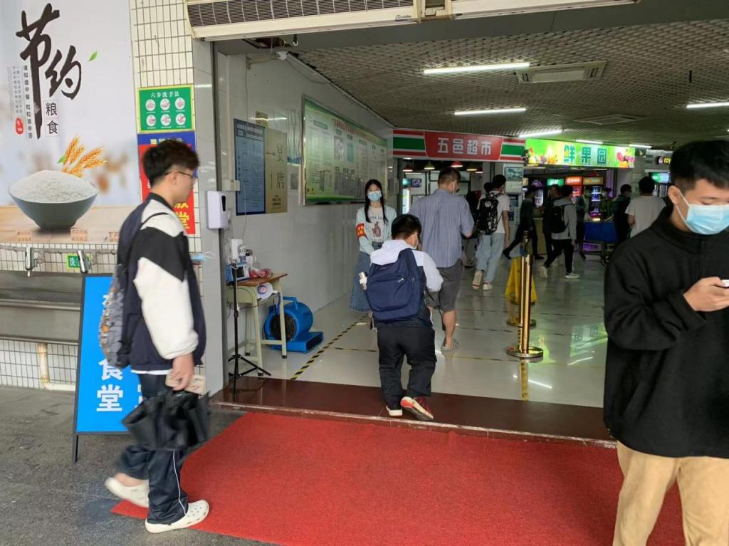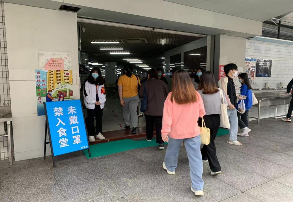 如今正处于新冠疫情防控的重要阶段,学校饭堂人流量大,属于学校重点关注的疫情防控场所。为了响应学校新冠疫情防控管理,保障学校师生的健康,提高学生文明就餐的意识,纺织材料与工程学院组织志愿者在第二饭堂进行防疫义工服务。乌云密布,凉风阵阵,在天气多变的情况下,志愿者们仍按时在第二饭堂集合并开展工作,耐心地提醒同学们带好口罩注意自身防护。最终顺利地完成任务,保障了饭堂疫情防控工作的正常进行。