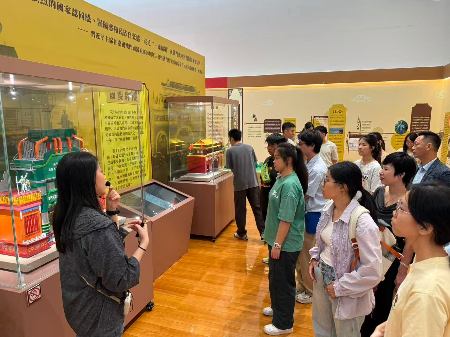 历史是最好的教科书,也是最好的清醒剂。师生还参观了由澳门特别行政区政府主办、中国人民抗日战争纪念馆支持举办的“为了民族解放与世界和平——纪念中国人民抗日战争暨世界反法西斯战争胜利80周年”主题展览以及青少年爱国爱澳教育基地、澳门回归贺礼陈列馆,深切体悟到要以抗战精神为指引,坚定爱国爱澳信念,铭记历史、薪火相传、团结奋进,湾区青年携手共同谱写澳门“一国两制”实践的新篇章,为民族复兴作出新贡献。