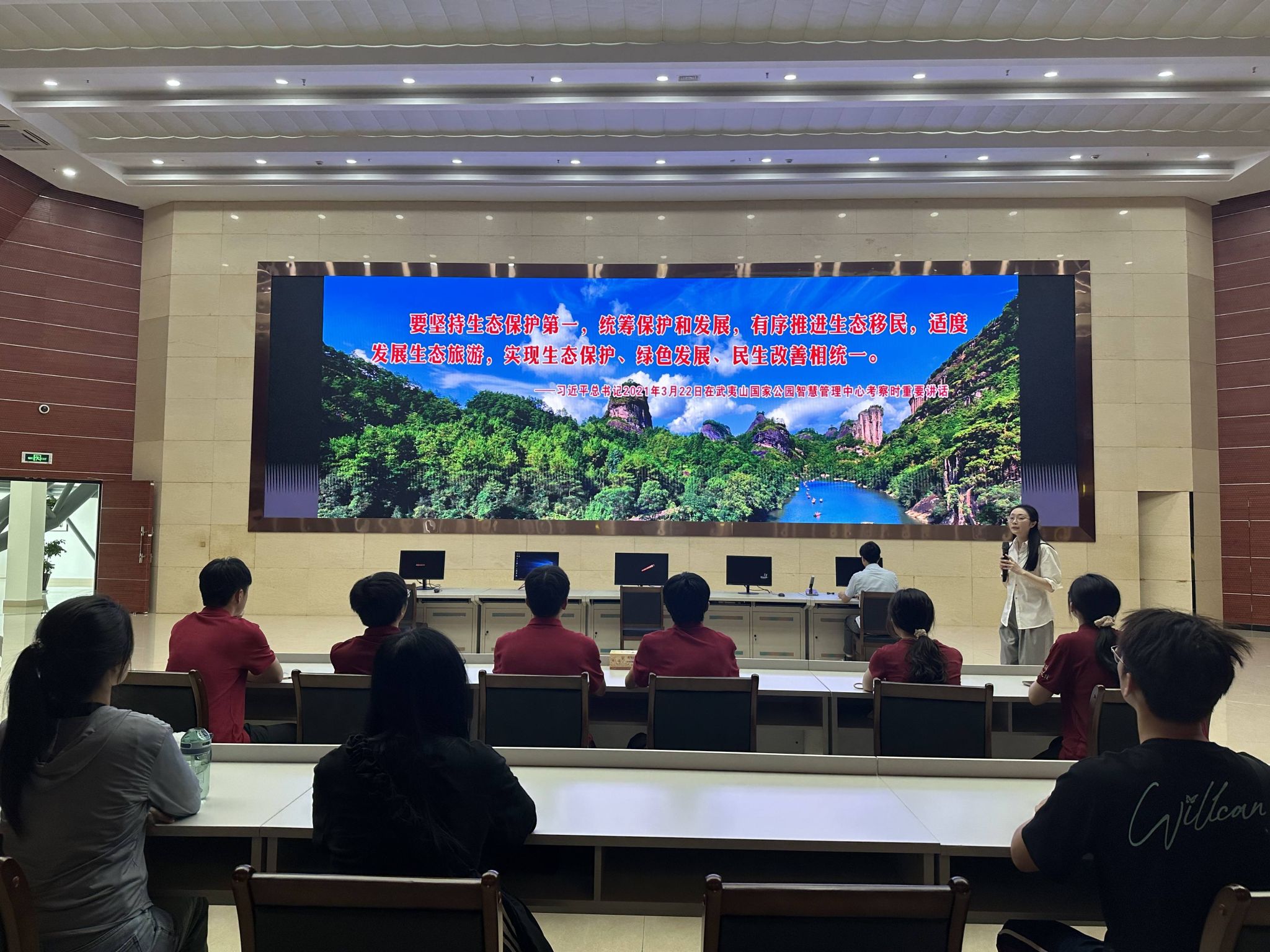 闽江之畔,武夷山下,一幅融合了民族团结、基层治理、生态振兴与文化传承的福建新画卷正徐徐展开。走在三坊七巷的石板路上,师生们深入历史名人故居与历史文化展馆开展沉浸式学习,在福州的历史与现实交融中,系统挖掘蕴含其中的铸牢中华民族共同体意识资源,让文化寻根与思想溯源同频共振;走进军门社区,“七一勋章”获得者、社区党委书记林丹详细讲述了习近平总书记三次到访军门社区的故事,并介绍了社区的治理创新实践;考察南平武夷山市星村镇燕子窠生态茶园,实地探寻茶园助力乡村振兴的发展密码;走进武夷山国家公园智慧管理中心,这里不仅留存着习近平总书记关切生态保护的重要印记,更是青年感悟思想伟力、汲取奋进能量的鲜活课堂;探访朱子园,探寻朱子文化脉络,答好继承发展中华优秀传统文化的时代之问。
