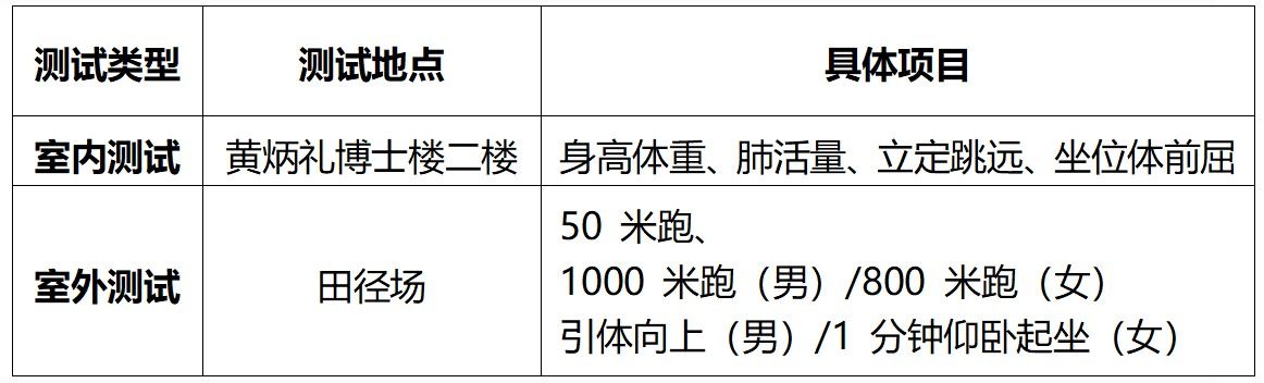 3.测试过程中,如出现测试设备故障等不可控因素,为保证数据的准确性和真实性,学生需服从体测工作人员安排,重测项目。