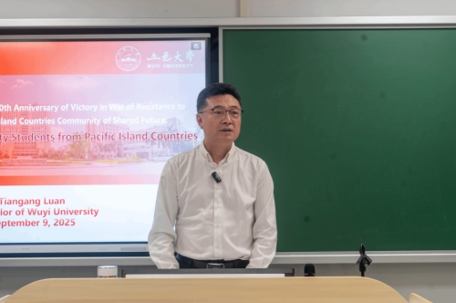 9月9日下午,校党委书记栾天罡以“从抗战胜利80周年到中太命运共同体——五邑大学太平洋岛国青年的使命担当”为题,在南主楼306教室为来自太平洋岛国的留学生带来了一堂别开生面的全英文“开学第一课”,开启了新学期的学习征程。