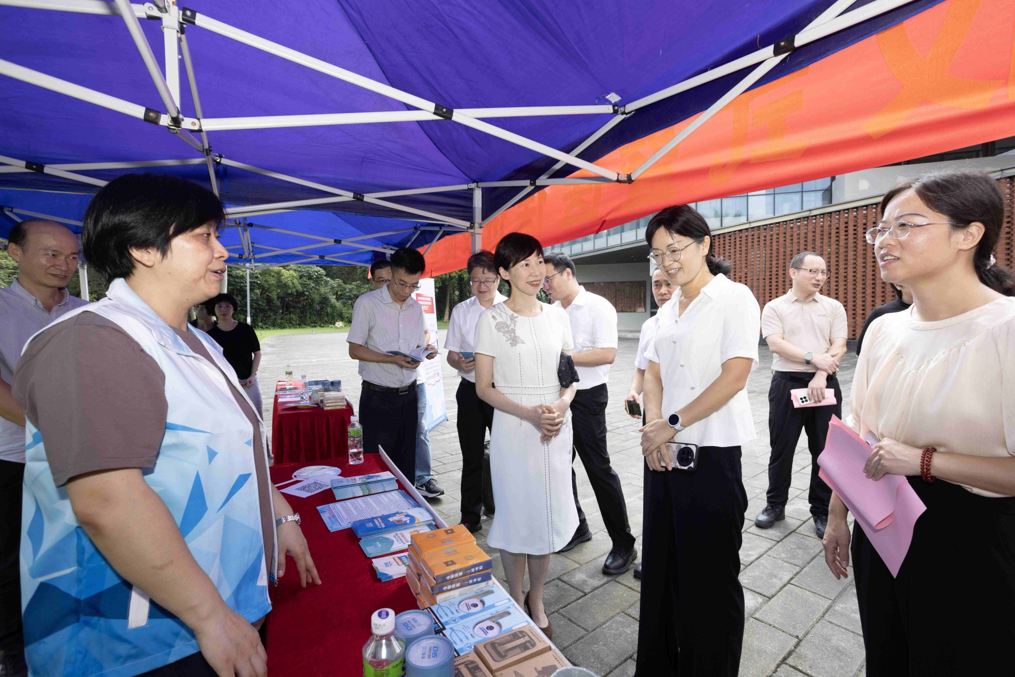 在与会嘉宾的共同见证下,高校参保经办服务点正式揭牌启用。仪式结束后,与会领导嘉宾实地参观了位于学生综合服务中心的服务点,现场了解“粤智助”自助终端的操作流程与志愿服务机制,并观摩了同期举办的参保宣传进高校专题活动,对内容丰富、形式多样的政策宣传方式表示肯定。