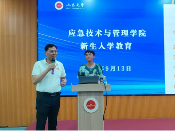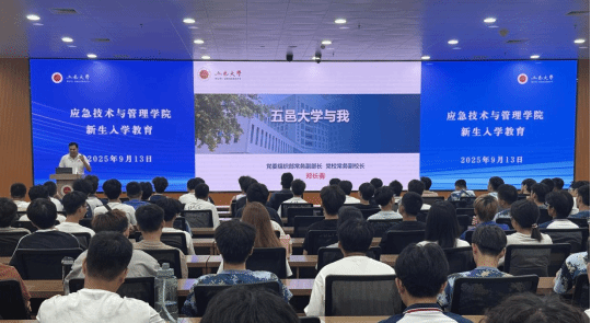 9月13日,应急技术与管理学院在策文商学院副楼204报告厅开展新生入学教育,学校党委组织部常务副部长、1986级校友郑长春应邀为学院全体新生带来主题分享——《五邑大学与我》。