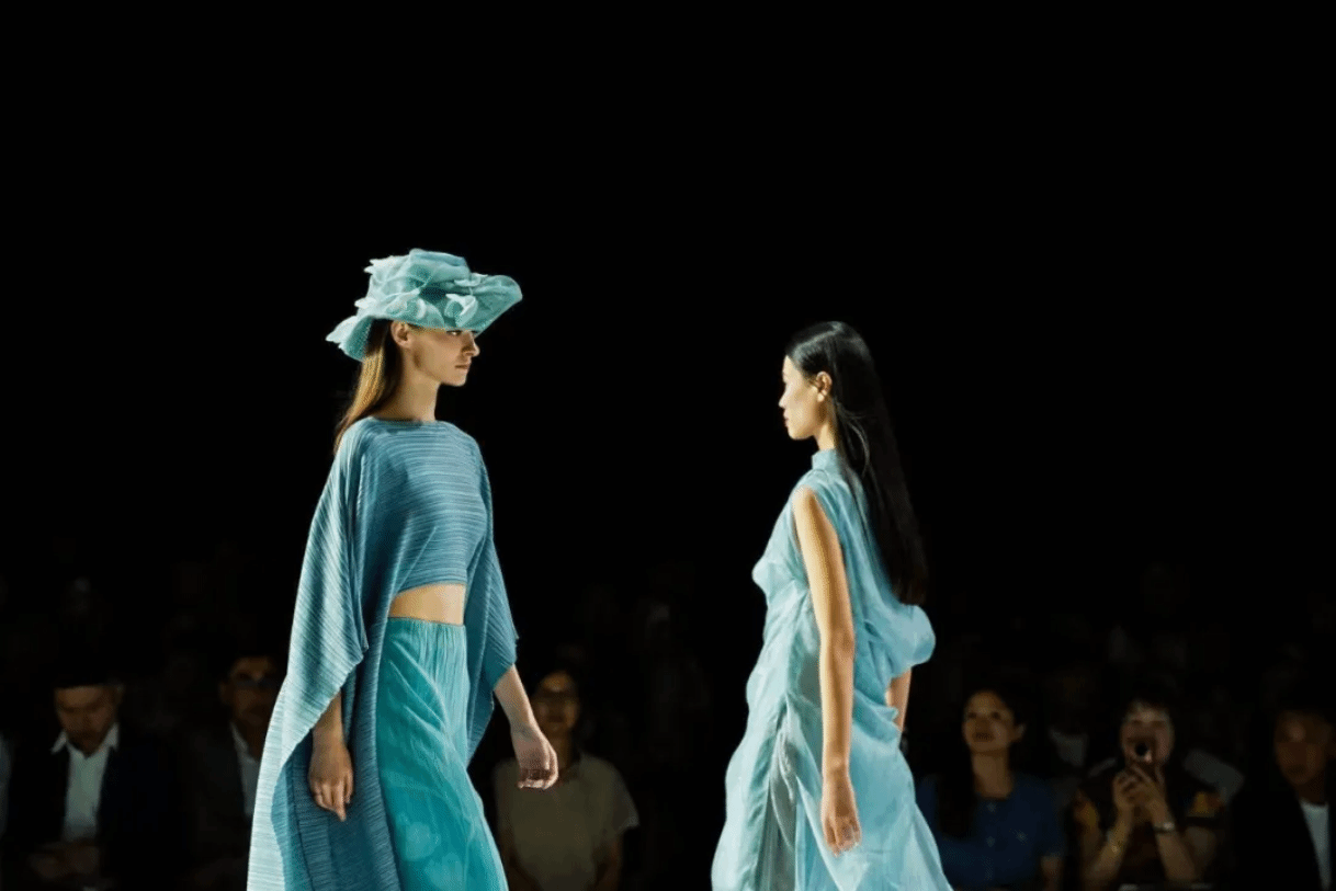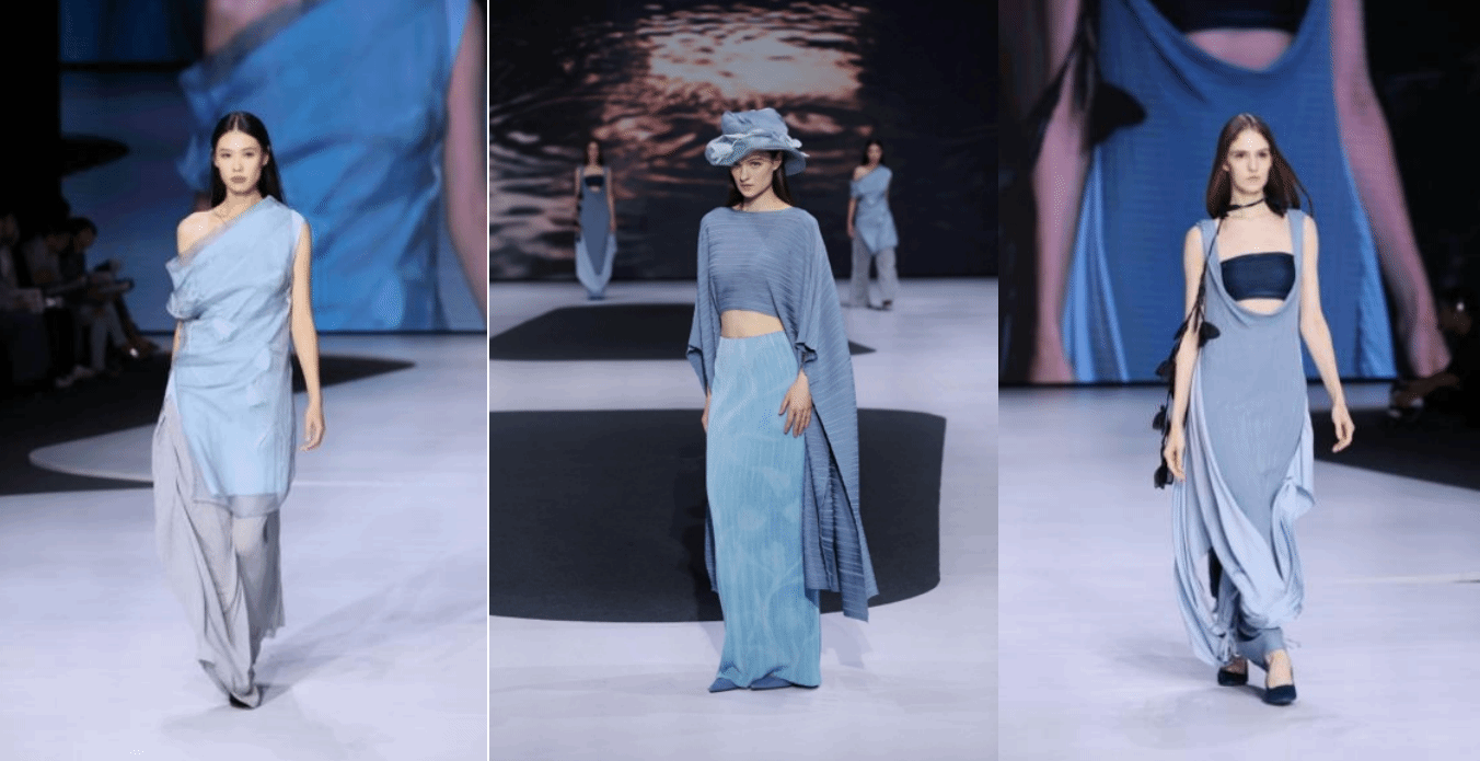 “Lifestream”是何嘉璇在严琴老师指导下完成的同名毕业设计的深化与延展,体现了从毕业设计到行业赛事的无缝衔接。该系列聚焦可持续时尚设计理念,通过“一片式”设计巧变八种穿法,极大延长服装的生命周期;运用“蓝晒法”工艺,将植物影像烙印于布料,以艺术化手法呼应“生命之流”的主题,传递出人与自然和谐共生的设计思考。