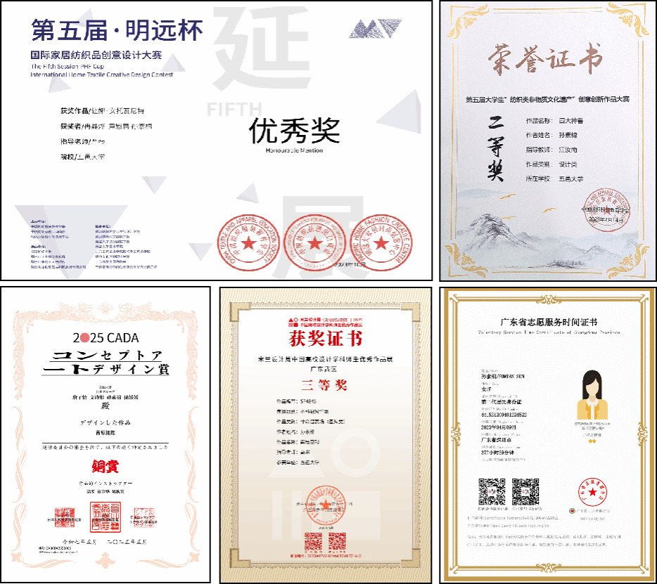 2025年5月,获米兰设计周中国高校设计学科师生优秀作品展非命题赛场广东赛区三等奖