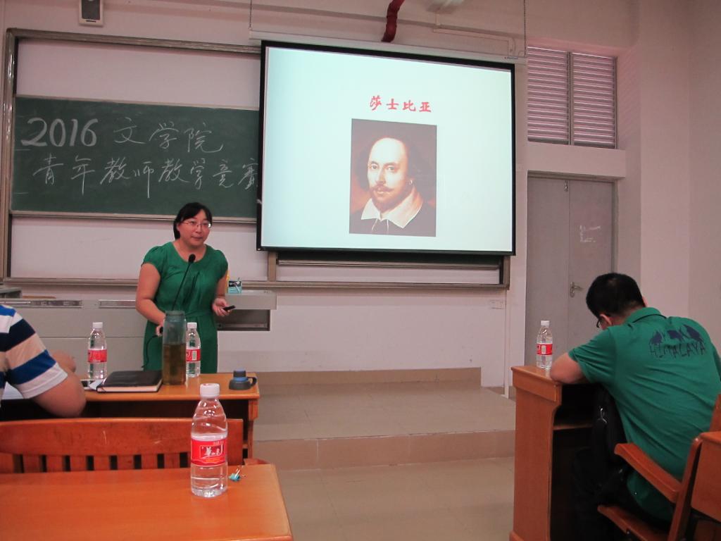 9月28日下午,文学院在北主楼603教室举行青年教师讲课比赛。五位青年老师各展风采,激烈竞争,最后王兰、郑伟娜老师获一等奖,曾真、邓妙慈老师获二等奖,胡君老师获三等奖。